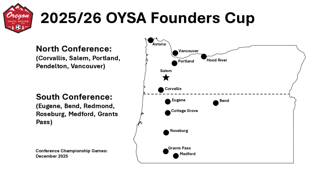 In Fall 2025, we will have two separate conferences in Oregon. This was done in order to make the Founders Cup accessible to all of Oregon, without the burden of statewide travel being necessary to play.