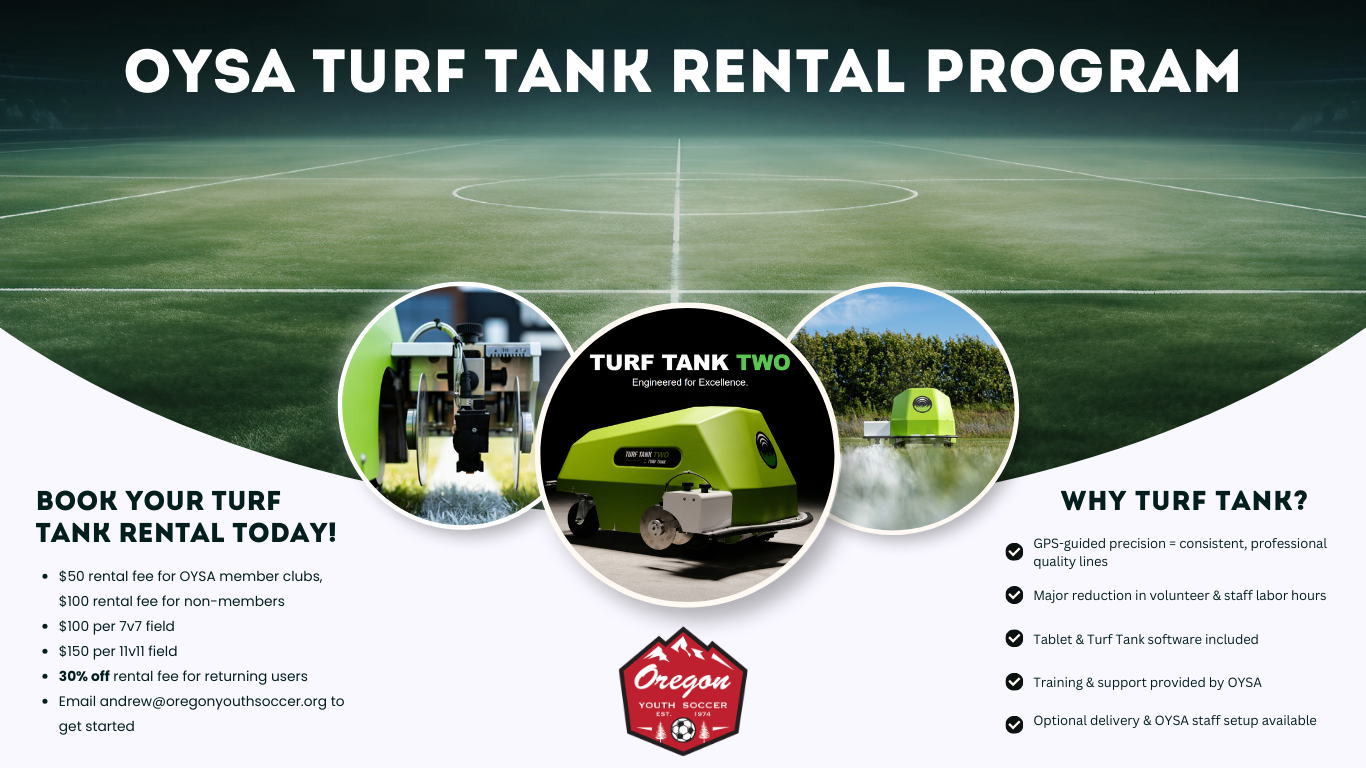 Reach out to andrew@oregonyouthsoccer.org to schedule your Turf Tank rental or find out more information.